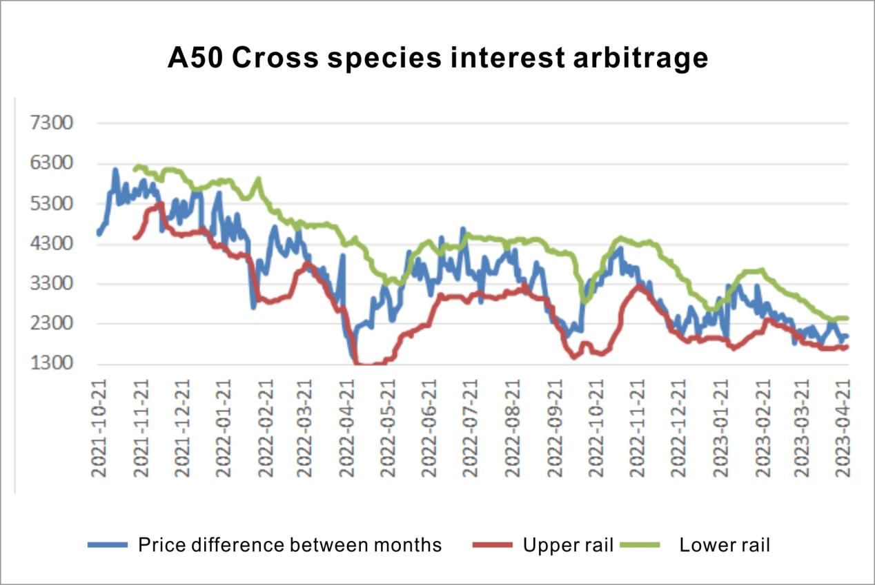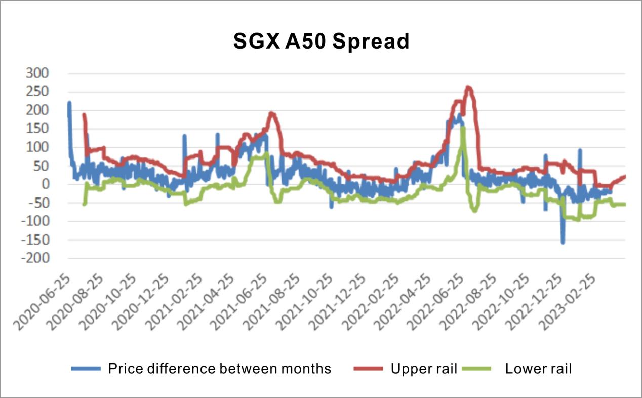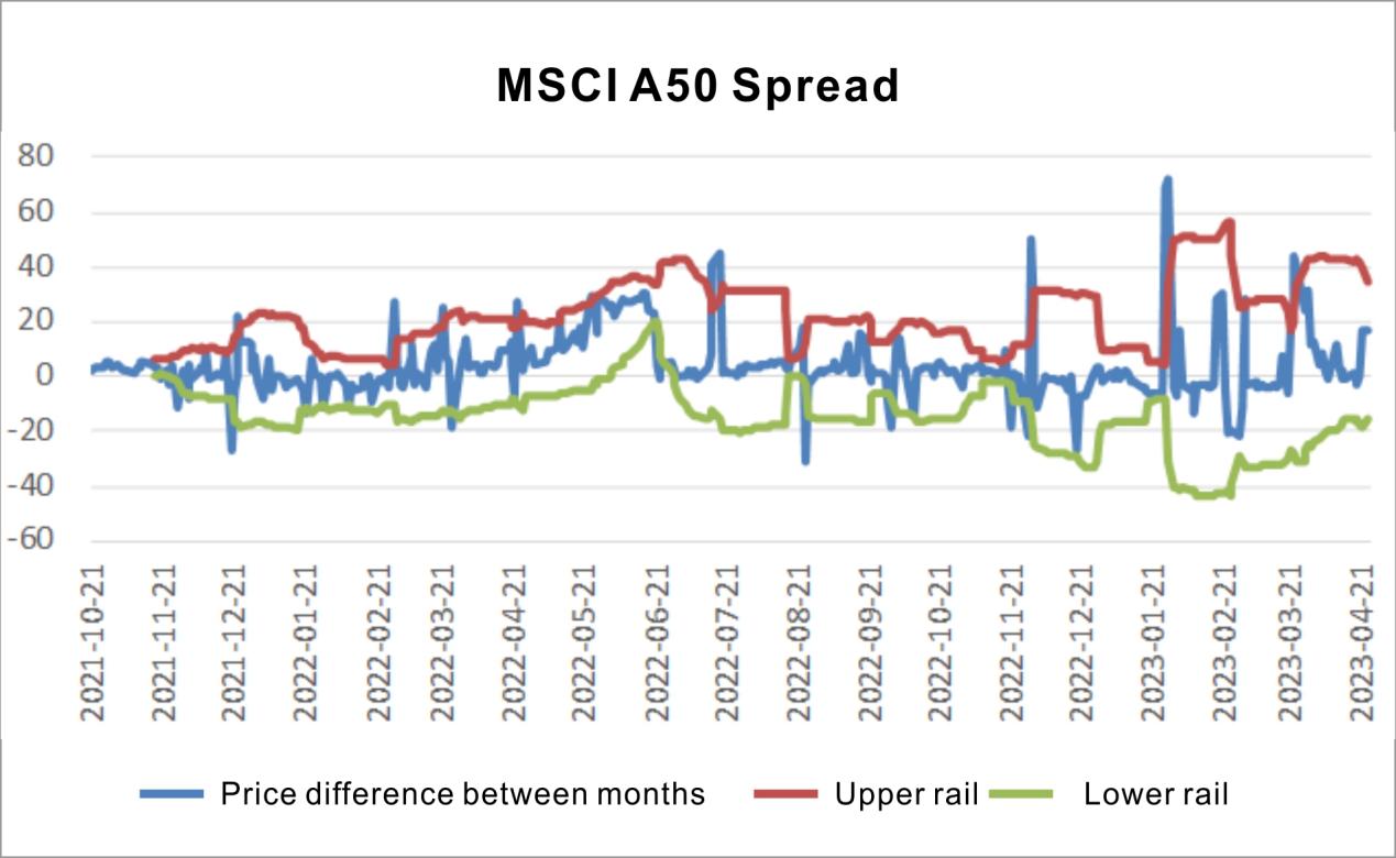 Cross-period arbitrage: The upper and lower Bollinger Bands of the FTSE China A50 inter-month spread range: [-54, 21], the upper and lower Bollinger Bands of the MSCI China A50 inter-month spread range: [-15, 35], it is recommended that spreads break out of this range for arbitrage.
