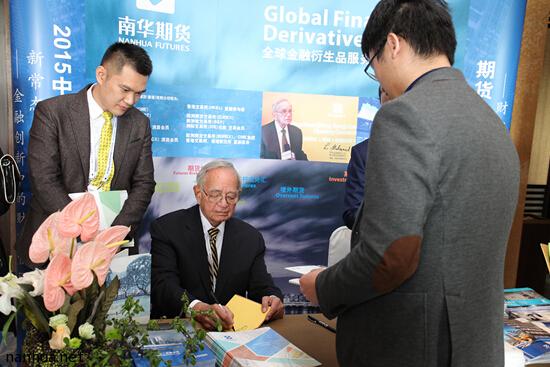 分论坛开始前,利奥·梅拉梅德先生还专门在南华期货展台前为慕名而来的诸多“粉丝”签名、合影,进行了零距离交流