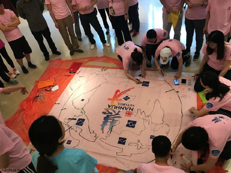 培训结束前,全体队员携手共绘蓝图,将世界地图描绘于白色旗帜上,并将南华期货logo绘画于世界地图的各大洲上,以此表达对公司的美好祝愿,祝愿公司能成为一流的全球化金融服务平台,继续坚持“走出去”,加快“引进来”,成为境内外投资者首选的一站式金融服务提供商。