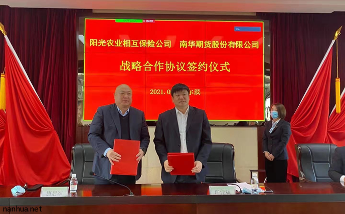 阳春三月,万物更新,南华期货与阳光农业相互保险公司(以下简称“阳光农险”)于3月23日在哈尔滨市签署了合作协议。此次合作协议的签订,标志着双方在信息交流、会议培训和“保险+期货”业务开展及项目申报等方面将进一步深入合作,实现合作共赢。