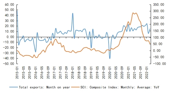 3) In terms of the performance of SCFI (weekly frequency), the April average year on year growth rate of the SCFI fell to the lowest since August 2020. High frequency data also show that the outbreak significantly weighed on exports in April.