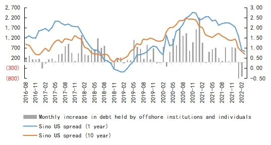 Now, strong dollar and weak export expectations are hard to change in the short term, and, until US inflation data are available in April, the US Federal Reserve is expected to aggressively guide interest rate hikes until inflation is certain, so the RMB leaving its lowest point is relatively certain, but the extent of the subsequent depreciation depends largely on how the dollar index compares with the US and China fundamentals. Moreover, the most critical variable in whether the reversal of the China US interest rate differential will continue to lead to capital outflows is the outbreak and the performance of the domestic economy. If there is a significant inflexion point in the outbreak and confidence in stable domestic growth changes, the outflow may end, and the pressure on the RMB exchange rate will ease.