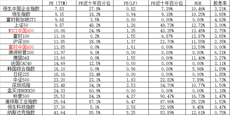 Domestic: Pay attention to the progress of economic recovery, and policy support is still the key. (1) China's GDP grew by 5.5% year-on-year in the first half of the year, and 6.3% in the second quarter, lower than market expectations; national real estate development investment fell by 7.9% year-on-year. In June, the national surveyed urban unemployment rate was 5.2%, and the youth unemployment rate was 21.3%. (2) The Central Committee of the Communist Party of China and the State Council issued the "Opinions on Promoting the Development and Growth of the Private Economy". The "Opinions" pointed out that "the private economy is a new force to promote Chinese-style modernization and an important foundation for high-quality development." It is necessary to adhere to the "two unshakable" and specifically propose 31 policy measures in 7 aspects including optimizing the development environment of the private economy, increasing policy support for the private economy, strengthening legal protection for the development of the private economy, and focusing on promoting the high-quality development of the private economy. (3) Intensive introduction of policies to stabilize growth and promote consumption. The Ministry of Commerce and other 13 departments jointly issued a number of measures to promote household consumption. The notice proposed to vigorously improve the quality of supply, actively innovate consumption scenarios, effectively improve consumption conditions, focus on optimizing the consumption environment, and put forward targeted measures and suggestions; the Ministry of Commerce stated that it will further relax the restrictions on foreign investors' strategic investment in listed companies, research and support new energy vehicles to develop international markets; the National Development and Reform Commission issued a document to promote the consumption of electronic products and strongly support the sending of electronic products to the countryside. (4) The central bank and SAFE raised the macro-prudential adjustment parameters for cross-border financing. On July 20, the central bank and the State Administration of Foreign Exchange announced that in order to further improve the macro-prudential management of full-scale cross-border financing, continue to increase the sources of cross-border funds of enterprises and financial institutions, guide them to optimize the structure of assets and liabilities, and increase the macro-prudential adjustment parameters of cross-border financing of enterprises and financial institutions from 1.25 to 1.5, which will be implemented on the same day. The increase in parameters is conducive to releasing the liquidity of the US dollar, easing the pressure of RMB depreciation, and reasonably guiding the market's expectations on the RMB exchange rate. (5) The National Standing Committee deliberated and approved the "Guiding Opinions on Actively and Steadily Promoting the Transformation of Urban Villages in Megacities". The "Opinions" propose that the active and steady implementation of urban village transformation in megacities is an important measure to improve people's livelihood, expand domestic demand, and promote high-quality urban development. It is necessary to increase policy support for the transformation of urban villages, actively innovate the transformation model, and encourage and support the participation of private capital. (5) China and the United States maintain active dialogue. The US President's special envoy for climate issues, Kerry, recently visited China to exchange views on cooperation in tackling climate change. On July 20, President Xi Jinping met with former U.S. Secretary of State Henry Kissinger, and emphasized that "on the basis of following the three principles of mutual respect, peaceful coexistence, and win-win cooperation, China is willing to discuss with the U.S. the way for the two countries to get along correctly and promote the steady development of Sino-U.S. relations." (6) Market valuation: The current FTSE China A 50 valuation is relatively low. With the continuous recovery of the domestic economy, the stabilization of the RMB exchange rate, and the slowdown of overseas interest rate hikes, the attractiveness of the A-share market will increase.